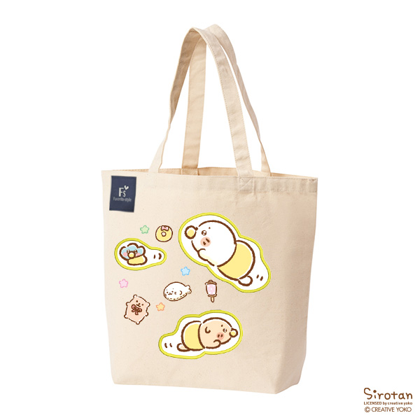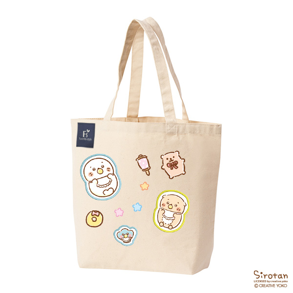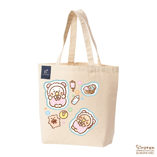 ばぶばぶベビーしろたんのプリントワッペンをあしらったトートバッグです。