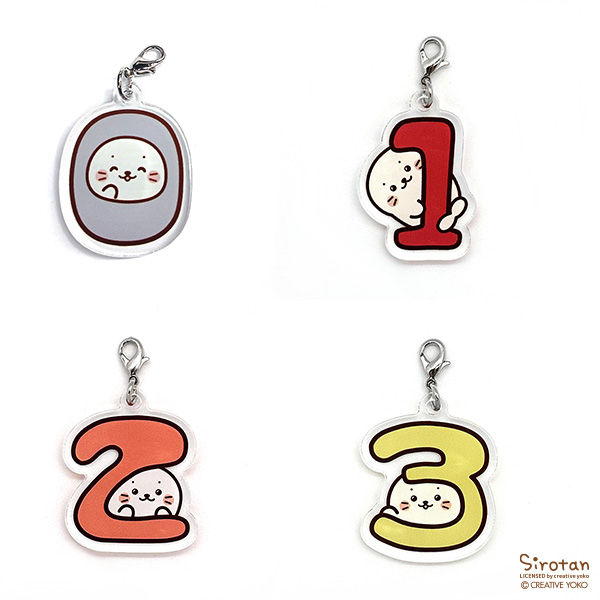 オリジナルフォントのしろたんアクリルチャーム。好きな番号をお選びください。